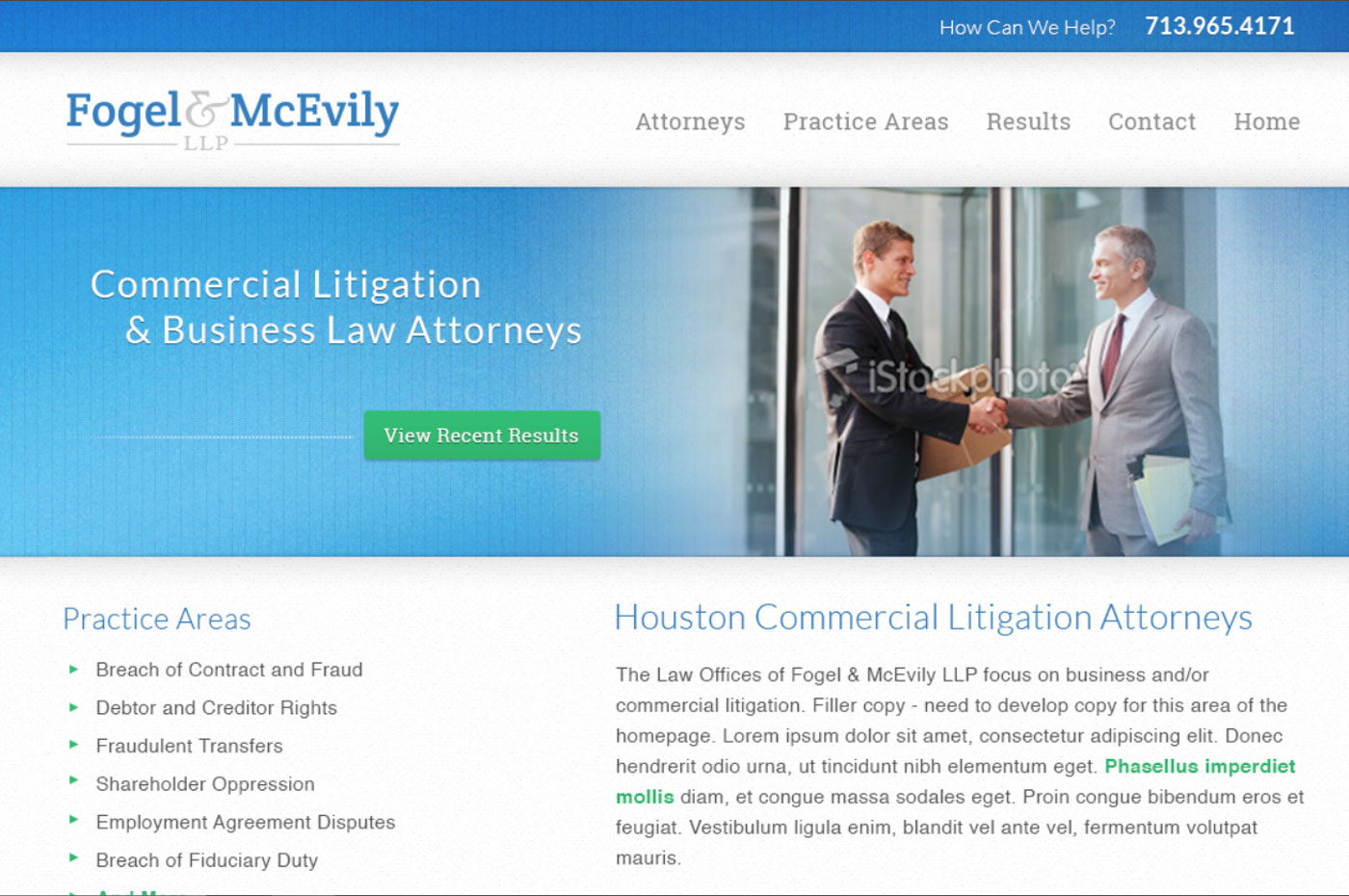 My role with this law firm included logo design, collateral creation, copywriting, and website design and development.