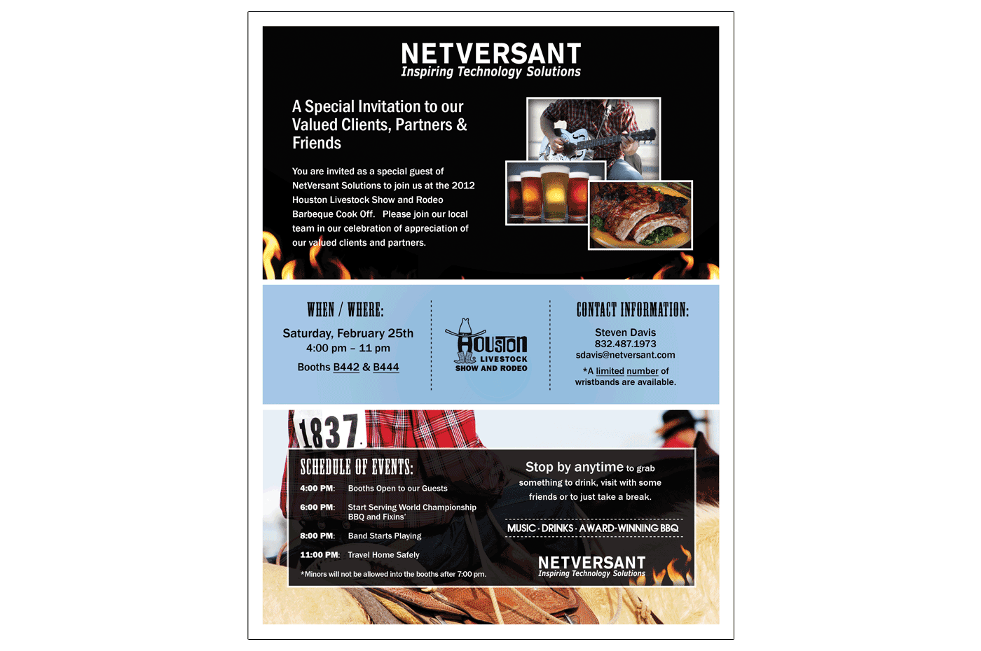 For Netversant, I created two 1 page flyers. One was for an open house and, the other, the Houston Livestock Show and Rodeo.