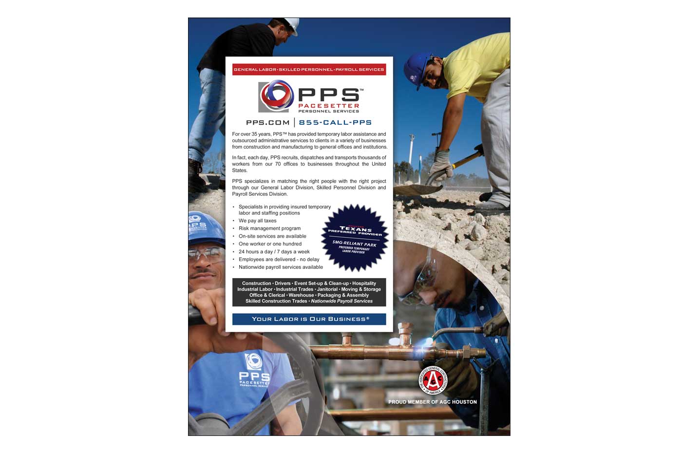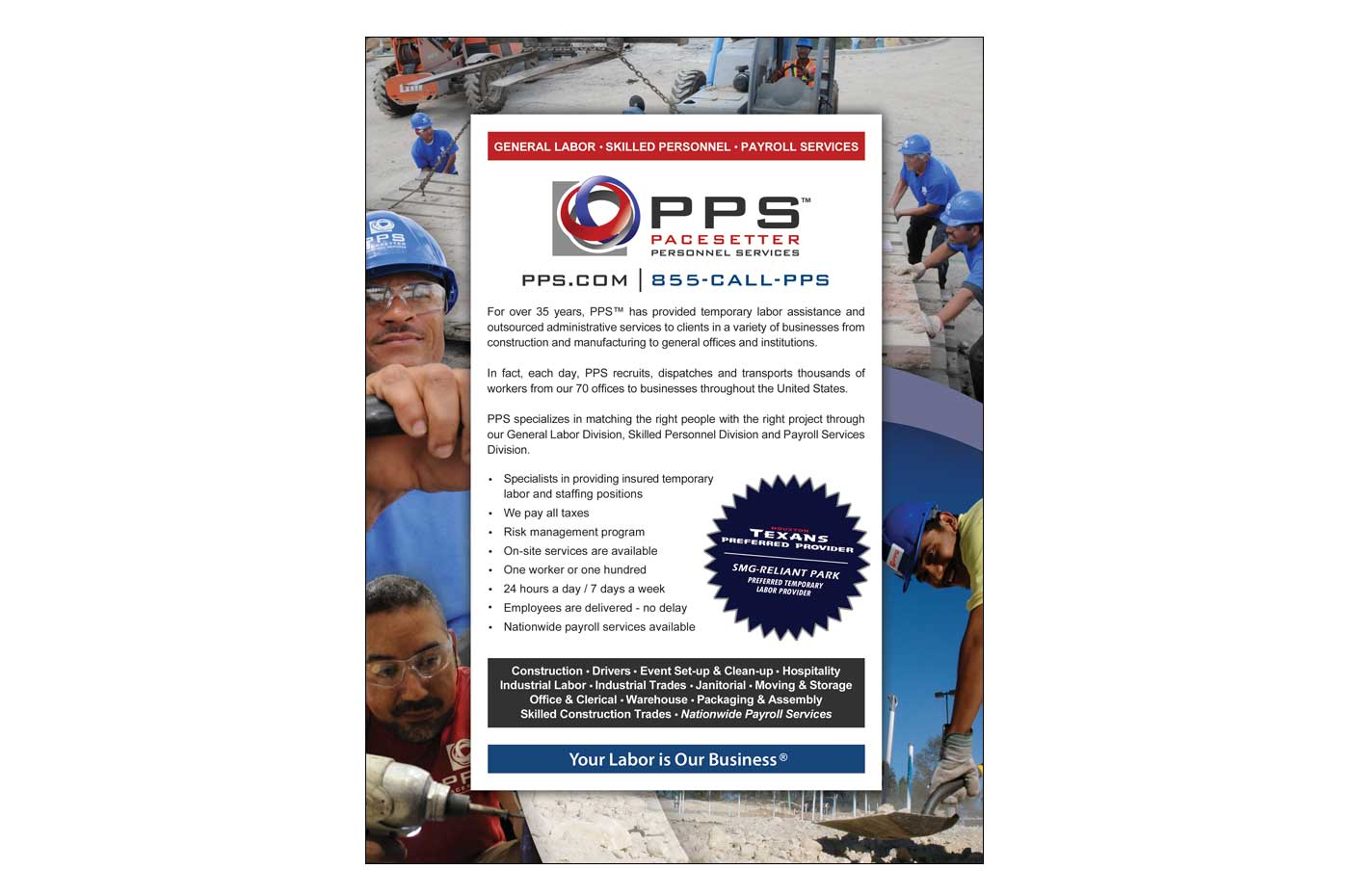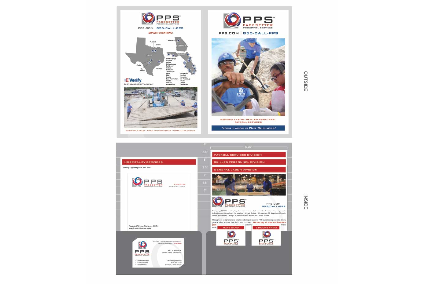 As the Marketing Manager for this company, I led two large-scale rebranding initiatives and spearheaded ongoing marketing strategies. The first major step involved a partial rebrand, where we updated all marketing and sales materials while retaining the original logo. Our goal was to refine the company’s tone – Your Labor is Our Business – and visual identity to better align with the evolving market.